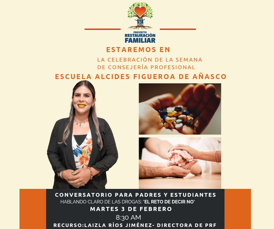 Nos alegra compartir que estaremos participando en la celebración de la Semana de Consejería Profesional en la Escuela Alcides Figueroa de Añasco, con un conversatorio dirigido a padres, madres, encargados y estudiantes.